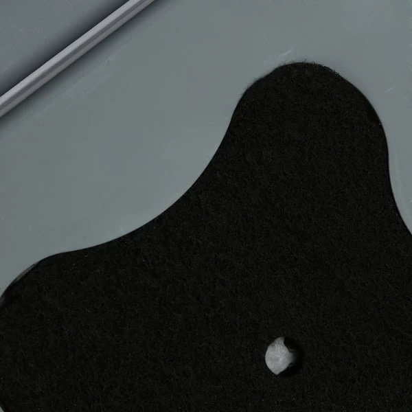 Eine Beutelverankerung am Eingangsbereich macht die Reinigung denkbar einfach, weil dadurch eine Hand für die Katzenstreuentnahme frei ist. Ein simples Verschieben des Verschlussriegels, und die Abdeckung ist fixiert oder kann abgenommen werden. Und eine auswechselbare Aktivkohle-Filtermatte ist schnell ersetzt und vermindert unangenehme Gerüche.