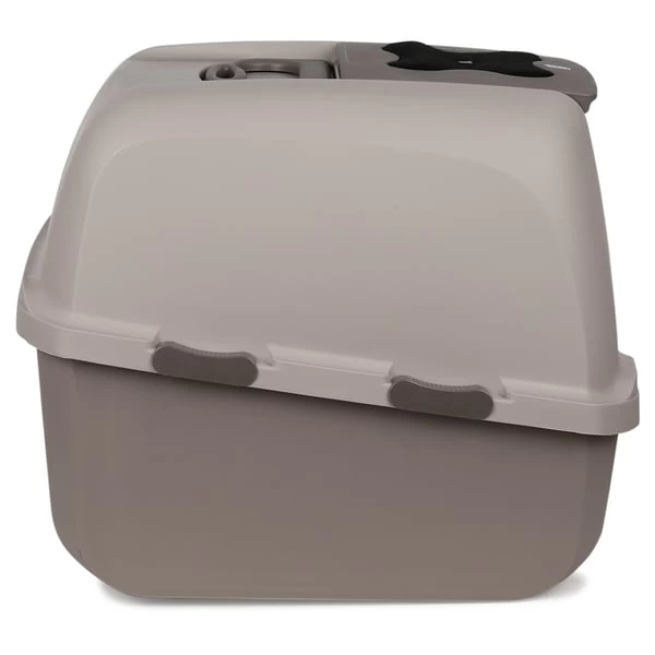Die Toilette ist besonders für große Katzen geeignet und hat viele Vorzüge, die ihre Verwendung und Pflege bequemer machen. Eine Beutelverankerung am Eingangsbereich macht die Reinigung denkbar einfach, weil dadurch eine Hand für die Katzenstreuentnahme frei ist. Ein simples Verschieben des Verschlussriegels, und die Abdeckung ist fixiert oder kann abgenommen werden. Und eine auswechselbare Aktivkohle-Filtermatte ist schnell ersetzt und vermindert unangenehme Gerüche.