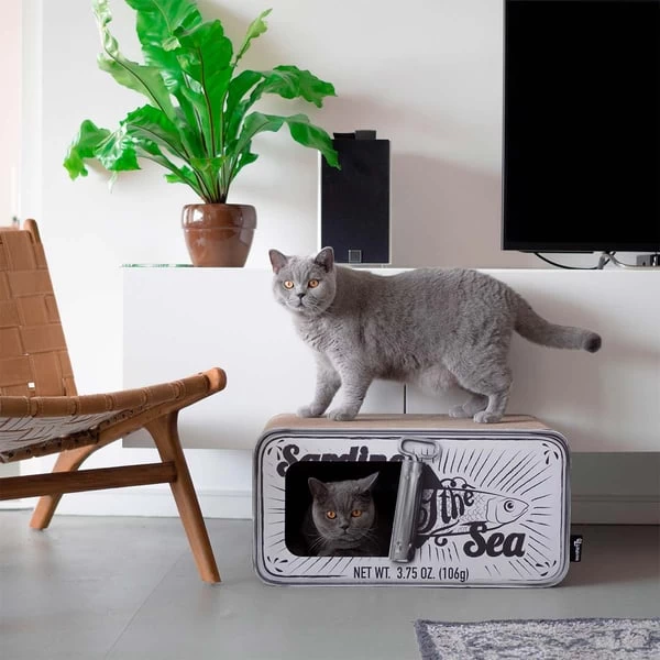 District 70 ist eine echte Wohltat für Sie und Ihren pelzigen Freund. Damit bieten Sie Ihrem Tier nicht nur einen neuen Schlafplatz, sondern bringen auch Ihre Einrichtung auf aktuellen Stand. Das Oberteil des Kratzmöbels Sardine ist mit Wellpappkarton bedeckt und bietet Ihrer Katze so eine perfekte Kratzfläche. Das attraktive, ins Auge fallende Design im Stil einer Sardinendose passt zu jeder modernen Einrichtung. Es garantiert zudem viele Möglichkeiten für wunderschöne Fotoserien!