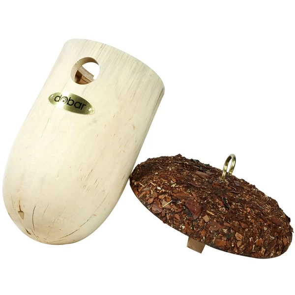 Dieser auffällige Nistkasten in Form einer Eichel verbindet Funktionalität und ein ansprechendes Äußeres. Die Nisthilfe besteht aus robustem Kiefernholz (Pinus sylvestris, Hauptholzart) aus europäischer Forstwirtschaft und hat ein Einflugloch mit einem Durchmesser von 28 mm. Dadurch eignet er sich besonders für kleine einheimische Wildvögel, wie etwa Blaumeisen. Mit dem Metallhaken auf dem mit Rinde bedeckten Dach können Sie den Meisenkasten überall an Bäumen und Gebäuden aufhängen. Das abnehmbare Dach ermöglicht zudem eine unkomplizierte Reinigung des Innenraums nach der Brutsaison. Die Herstellung in europäischer Produktion erfolgt in Handarbeit mit Fokus auf bester Qualität in der Verarbeitung. Der Nistkasten ist ca. 14 x14 x 27 cm (L x B x H) groß.
