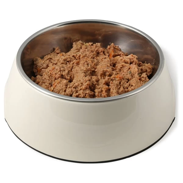 Pute 55 % (Putenfleisch 30 %, Putenherzen 17 %, Putenleber 8 %), Zucchini 15 %, Karotten 12 %, Äpfel 10 %, Kartoffelstärke, Mineralstoffe, Walnussöl 0,9 %, Eierschalenpulver, Seealgen, Kieselerde, Löwenzahnblätter, Brennnesselblätter, Ringelblumenblüten, Brunnenkresse