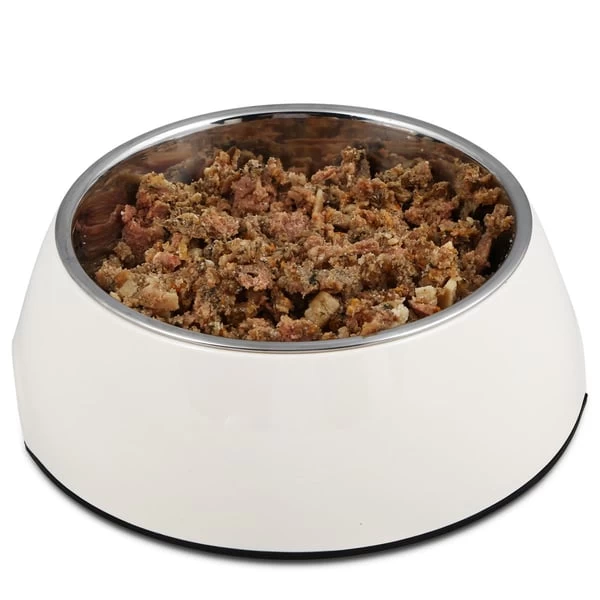 Lamm 60 % (Lammfleisch 20 %, Lammherzen 19 %, Lammlunge 18 %, Lammleber 3 %), Kartoffeln 14 %, Kürbis 11 %, Marillen 2 %, Mineralstoffe, Basilikum, Distelöl, Lachsöl, Brunnenkresse, Eierschalenpulver 0,2 %, Kamillenblüten 0,1 %, Seealgen.