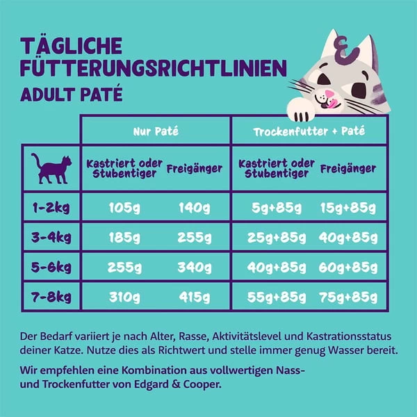 Rohprotein 9,5%, Fettgehalt 6%, Rohfaser 0,4%, Rohasche 2,5%, Feuchtigkeit 80,5%.