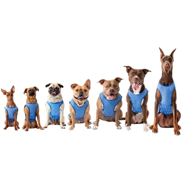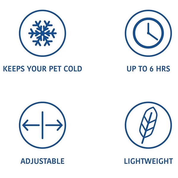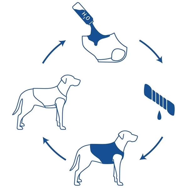Die GF PET® Kühlweste wurde entwickelt, um Ihren Hund an heißen Tagen und unterwegs kühl und behaglich zu halten. Einfach in der Anwendung und anpassbar. Einfach nass machen, auswringen & anziehen! Mit der neuen ELASTO-FIT®-Technologie passt sich diese einfache und leichte Weste perfekt an – KEIN BEINHEBEN MEHR! Hält Ihren Hund bis zu 6 Std. kühl. Anweisungen: Einfach nass machen, auswringen & anziehen. Sobald Wasser verdunstet, die Schritte wiederholen.