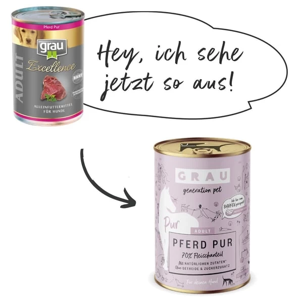 70% Pferd (Pferdeherzen, Pferdefleisch, Pferdelungen), 28,8% Brühe, 1% Mineralstoffe, 0,2% Leinöl