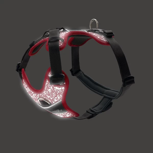 Das Geschirr DIVO REFLECT bietet neben der ergonomischen Passform ein Plus in Punkto Sicherheit dank Sichtbarkeit. Der unübersehbare Allover-Print im Camouflage-Stil reflektiert stark und ergänzt die Wirkung des umlaufenden 3M Scotchlite Reflective Material optimal. Die Serie DIVO steht für 100 Prozent Komfort, denn die atmungsaktive Polsterung aus weichem Mesh-Material schmeichelt Haut und Fell des vierbeinigen Begleiters. Ein besonderes Feature dieses komfortablen Y-Geschirrs ist der zweite D-Ring, der ein Anleinen im Brustbereich ermöglicht. Ob an einem oder -für maximale Kontrolle- an beiden Fixpunkten angeleint werden soll, bleibt dem Hundehalter selbst überlassen. Dank der 5-fachen Verstellmöglichkeit lässt sich das Geschirr DIVO REFLECT ganz individuell auf die Bedürfnisse und den Körperbau des vierbeinigen Begleiters anpassen und sitzt bei richtiger Handhabung wie eine zweite Haut. Die satten, leuchtenden Farben und der silbrige Camouflage-Print harmonieren besonders gut mit dem Hundefell und ziehen rasch neugierige Blicke auf sich. DIVO REFLECT fällt einfach auf – bei Tageslicht und in der Dunkelheit!