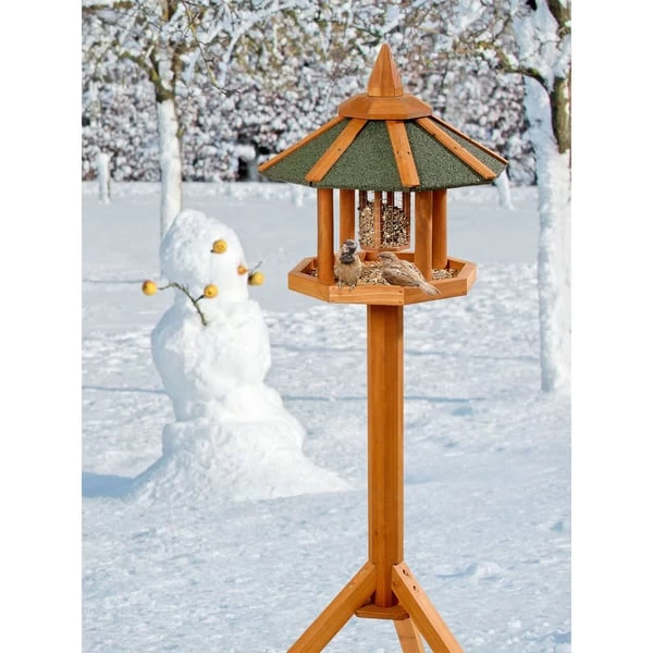 Das Vogelhaus River ist ein großes Sechseck-Futterhaus, das viele verschiedene Vogelarten in den Garten anlockt. Bewährtes Design mit großem Schutzdach und sicherem Standfuß. Ein integriertes Draht-Futtersilo bietet Platz für Erdnüsse oder anderes Futter. Der Futterplatz ist vor Regen und Schnee gut geschützt und leicht zu befüllen. Das Vogelhaus ist aus wetterbeständigem Massivholz hergestellt und leicht aufzubauen. Die spezielle Dachbeschichtung bietet für die Tiere einen idealen Landeplatz, der von allen Seiten gut erreichbar ist.