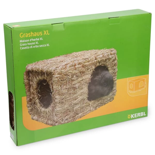 Ob als Nest, Versteck oder Spielhaus – für das Grashaus XL von Kerbl finden Nager aller Größen und Rassen vielerlei Verwendungsmöglichkeiten. Chinchillas bis Meerschweinchen, aber auch Frettchen, Kaninchen und Degus lieben es wegen seiner Naturmaterialien. Denn selbstverständlich besteht es zu 100 Prozent aus getrocknetem Gras, lässt sich daher auch gefahrlos anknabbern, und ist frei von gefährlichen Kunststoff oder Draht.