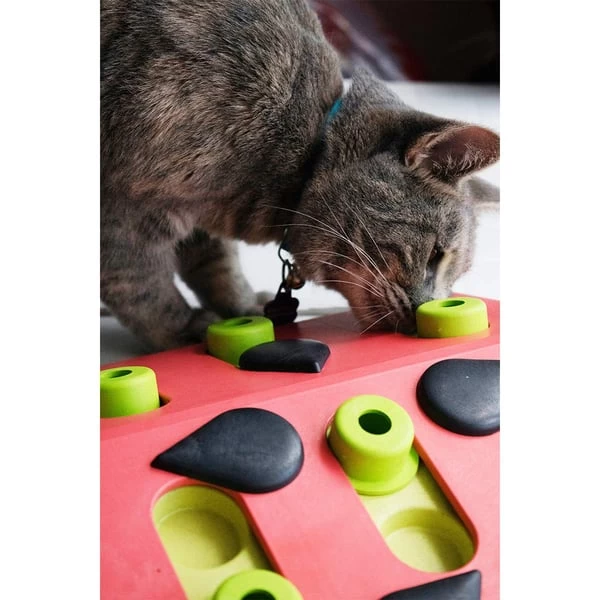 Deine schlauen Katzen werden die Herausforderung lieben, die ihnen Melon Madness Puzzle & Play von Nina Ottosson bietet. Sie können nach den Steckteilen schlagen und die Kerne drehen, um die 6 verborgenen Leckerlifächer aufzudecken. Passe den Schwierigkeitsgrad des Spiels an, damit es für Anfänger einfacher ist, während die ganz schlauen Katzen vor eine richtige Herausforderung gestellt werden können. Bei jedem Spielzeug ist ein englischsprachiges Infoblatt mit Tipps und Tricks enthalten, das dir verrät, wie du das Beste aus dem Spiel herausholen kannst. Ersetze den Standardnapf und füttere deine Katze mithilfe des Spielzeugs, damit sie ihre natürlichen Instinkte zur Jagd und Futtersuche ausleben kann. Das Spielzeug bietet ein Fassungsvermögen für bis zu ca. 60 g.