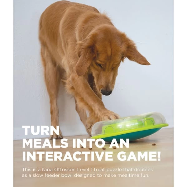 Es macht Spaß, es enthält Futter, es ist genau die Herausforderung, die dein Hund braucht. Die Leckerli-Denkspiele von Nina Ottosson bekämpfen Langeweile und tragen dazu bei, zerstörerisches Verhalten einzudämmen. Darüber hinaus hat dein Hund die Möglichkeit, seine geistigen Fähigkeiten zu trainieren. Die Wobble Bowl regt sowohl körperlich als auch geistig zur Beschäftigung mit Spaßfaktor an. Alternativ kann die Wobble Bowl als Anti-Schlingnapf eingesetzt werden, um die Fressgeschwindigkeit deines Hundes zu verringern und Blähungen und Verdauungsstörungen vorzubeugen. Die Wobble Bowl ist ein Denkspielzeug auf Einstiegsniveau, perfekt für Hunde, für die diese Art Spielzeug noch neu ist. Dank der rutschsicheren Unterseite ist sie auch auf harten Böden leise und verursacht keine Kratzer oder Schrammen auf dem Bodenbelag, während Dein Hund spielt. Der Deckel lässt sich für einfaches Reinigen abnehmen.