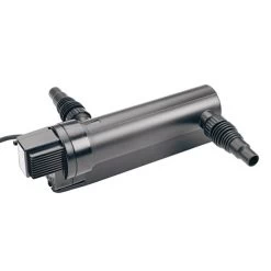 Das UVC-Vorklärgerät OASE Vitronic 24 Watt mit Bypass-Technik ist geeignet für max. Durchlaufleistungen bis zu 4500 l/h und hat eine Leistungsaufnahme von 24 Watt. Für eine hohe Funktionssicherheit sorgt ein Kontrollfenster. Die praktische Schnellverschlusstechnik erleichtert die einfache Quarzglasreinigung. Das UVC-Vorklärgerät OASE Vitronic 24 W gibt es komplett mit Universal-Stufenschlauchtüllen für den Anschluss von Schlauchdurchmessern von 1″ (25 mm) bis 1 ½“ (38 mm). Umfangreiches Anschlusszubehör ermöglicht die einfache Montage. Das Kabel ist 5 m lang. Die Nennspannung beträgt 220-240 V/50-60 Hz.