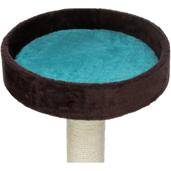 Der Trixie Kratzbaum Lugo ist durch seine moderne Farbgebung in braunen und türkisen Elementen sofort ein Blickfang.