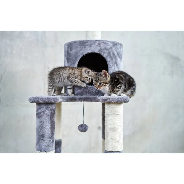 Der ZooRoyal Kratzbaum Mia ist ein schöner und stabiler Kratzbaum in der wunderschönem Farbe Grau mit diversen Liegeflächen, einer kuscheligen Höhle, und viel Kratzfläche aus natürlichem Sisal. Hier bleiben keine Wünsche deines Stubentigers offen: Nach dem Krallen wetzen, Klettern und Spielen kann sich deine Katze auf die Liegeflächen oder in der Höhle entspannt zurückziehen und ausruhen.