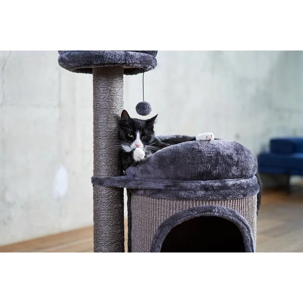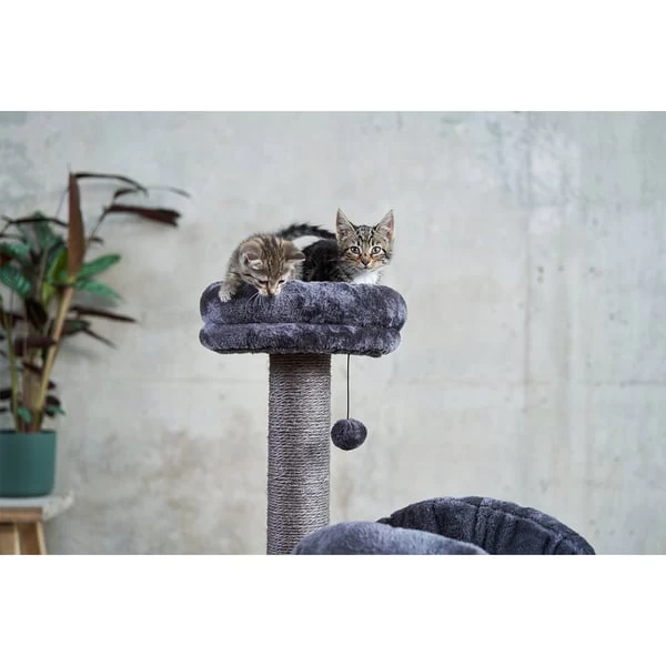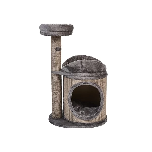 Bei dem modernen ZooRoyal Kratzbaum Suna in Grau mit integrierter Kratztonne bleiben keine Wünsche deiner Katze offen: Er verfügt über drei Liegeflächen, einer kuscheligen Höhle mit herausnehmbaren Kissen, einem kuscheligen Liegenest und Kratzfläche aus natürlichem Sisal.